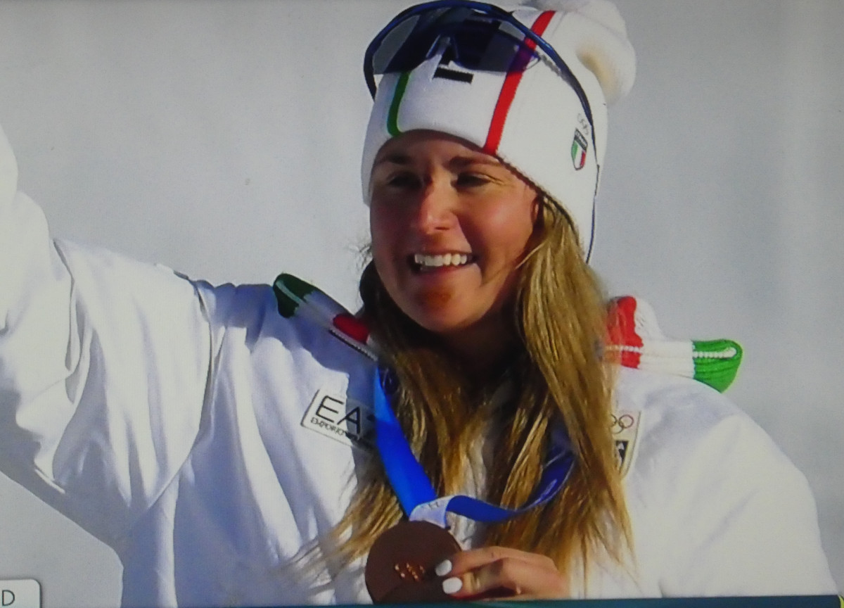 Michela Moioli più forte degli infortuni, conquista la medaglia di bronzo olimpica, che si va ad aggiungere all’oro e l’argento olimpico, all’oro mondiale dello scorso anno e a 2 coppe del mondo. Due giorni fa’ è finita in ospedale per una caduta causata da un’altra rider in training, con evidenti segni in faccia anche oggi. Ma da buona bergamasca “Mola mia”, si è ripresa in fretta e stamattina si è presentata alla run di qualifica ed è scesa sull’immenso tracciato di snowboardcross di Livigno con il sesto tempo. Ottavi e quarti passati in scioltezza, poi la semifinale, dove a metà gara si ritrova quarta, ma da lì parte una rimonta stupefacente, un paio di curve paraboliche tirate al limite e si mangia le avversarie ed è in finale. Finale per il titolo olimpico, con la ceca Eva Adamczykova, che quando si chiamava Samkova aveva già vinto l’oro Olimpico, quindi l’australiana Josie Baff, forse la più continua in questa stagione di Coppa del Mondo e la sorpresa svizzera, la giovanissima Noemie Wiedmer. Gara in fotocopia della semifinale, Moioli esce da butang di partenza quarta, Baff e Adamczykova che scappano via seguite dalla svizzera. La rimonta non le riesce come in semifinale, ma a metà gara aggancia la Wiedmer, la mette dietro sulle ultime paraboliche e sul mega salto finale; intanto è davanti Josie Baff, che conquista l’oro per l’Australia, argento per la repubblica Ceca con Adamczykova e bronzo per la portacolori del CS Esercito Michela Moioli.
