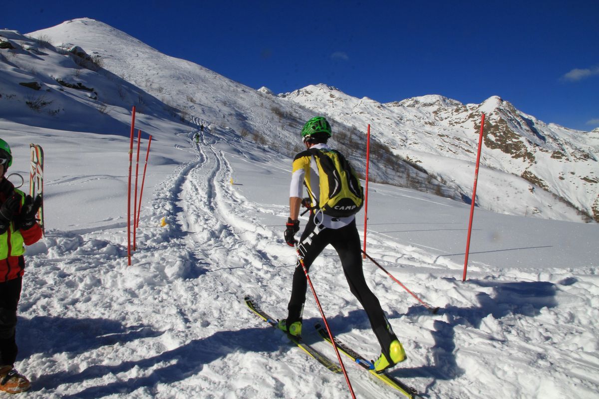 Percorso impreziosito dalla neve fresca caduta in settimana, con partenza dal parcheggio di Vaudanza (quota 1270m) fino all’anticima di Punta Palit (quota 2150m), quindi discesa fino alla zona di partenza dello skilift dismesso (circa quota 1400m), per poi risalire fino al traguardo posto nella zona d’arrivo della seggiovia, anche questa dismessa (quota 1700m), per un totale in salita di circa 1200 metri e di 600 metri di discesa.