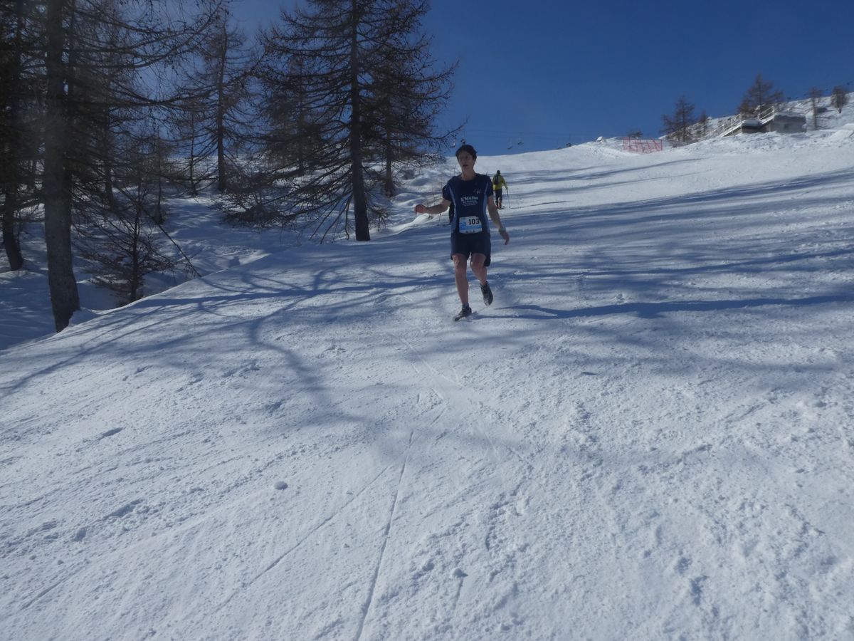 Alle ore 10,30 partenza della gara di skysnow, corsa con i ramponcini, gara up&down su neve abbastanza compatta da non creare problemi di sprofondamento.Va in scena l’ennesimo duello nelle corse in montagna canavesane tra Lorenzo Rostagno e Andrea Negro, con Rostagno sempre davanti e Negro che insegue con un distacco minimo di circa 20 secondi, 34’29” la vittoria di Rostagno, 34’52” per il secondo posto di Negro, terza piazza, come nella gara di scialpinismo, ancora per Lorenzo Facelli in 35’56”. Completano la top ten nell’ordine Edward Young, Alfonso Bracco, Paolo Pescetto, Mattia Cardello, Martino Orlarey (primo Master), Fabrizio Daniele e Marino Mezzano.